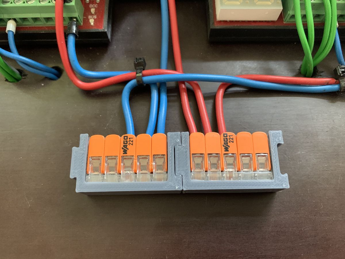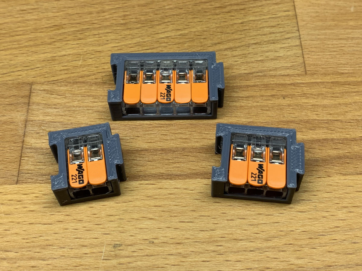 Mit dieser 3D-gedruckten Halterung sind die WAGO 221 Klemmen sicher und ordentlich befestigt.