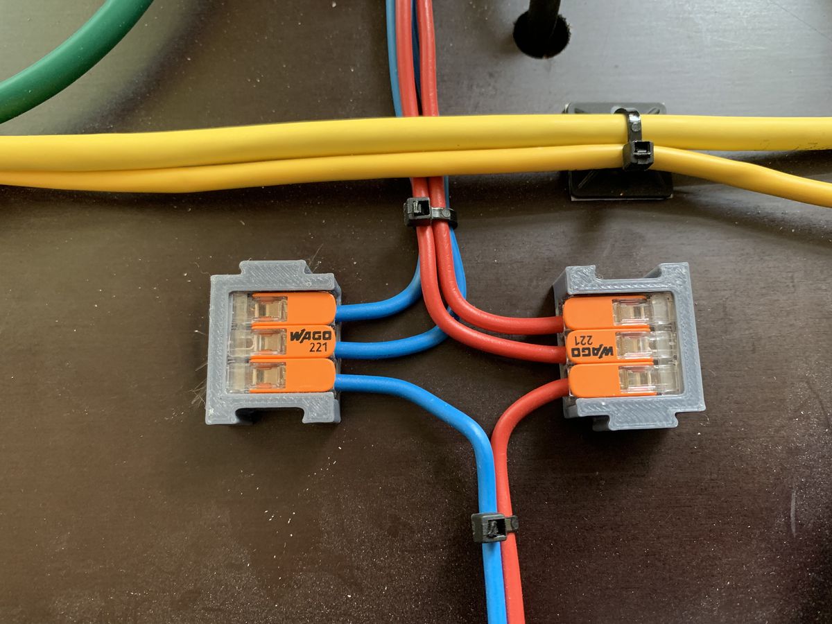 Mit dieser 3D-gedruckten Halterung sind die WAGO 221 Klemmen sicher und ordentlich befestigt.